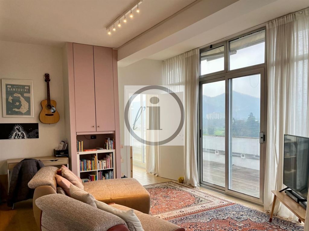 Montegrotto Terme centro, sul Viale principale, attico al quarto piano caratterizzato da terrazza abitabile di oltre 100 m². Gli spazi interni, pur non essendo smisurati, sono accoglienti e luminosi: ingresso, cucina (arredo a penisola) con camino, ripostiglio e soggiorno; studiolo, bagno finestrato e camera matrimoniale. La terrazza, principalmente a sud e a ovest, guarda i Colli e l'ampia superficie consente attrezzature ed arredi per viverla quotidianamente. Garage al piano terra di proprietà e posto auto libero.