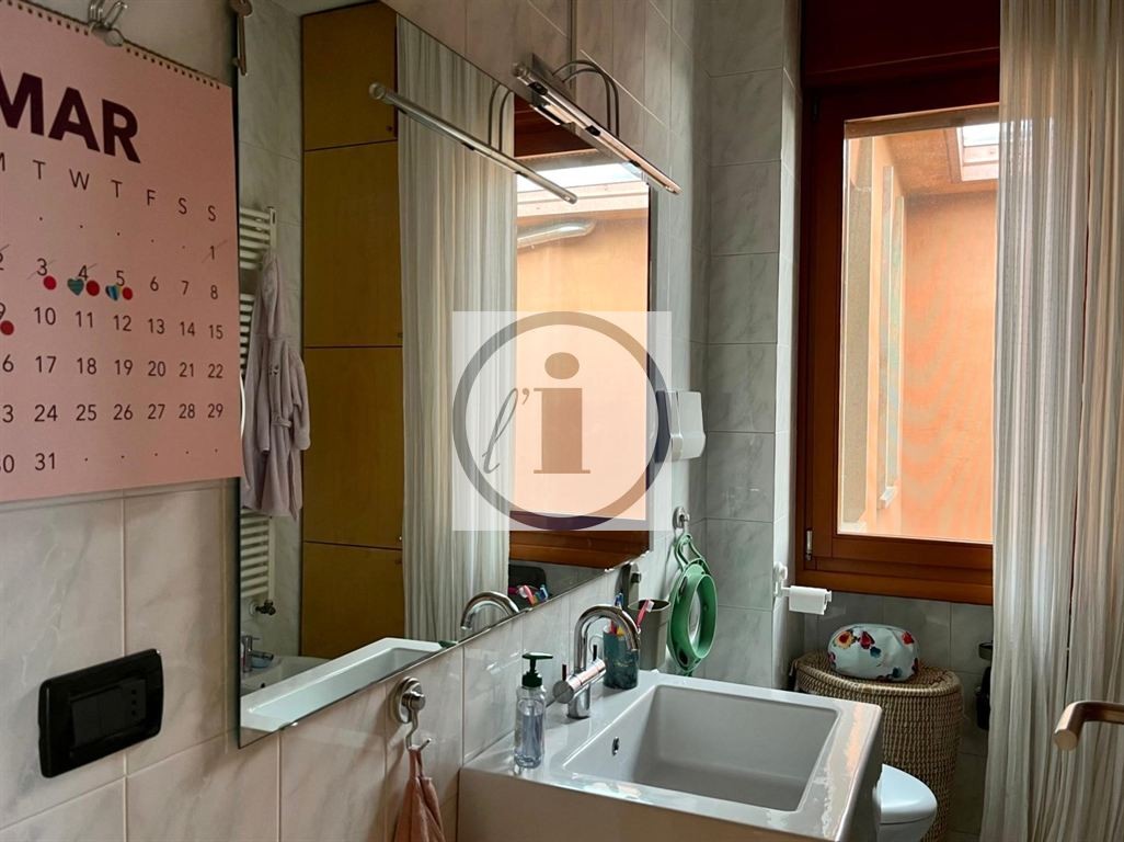 Montegrotto Terme centro, sul Viale principale, attico al quarto piano caratterizzato da terrazza abitabile di oltre 100 m². Gli spazi interni, pur non essendo smisurati, sono accoglienti e luminosi: ingresso, cucina (arredo a penisola) con camino, ripostiglio e soggiorno; studiolo, bagno finestrato e camera matrimoniale. La terrazza, principalmente a sud e a ovest, guarda i Colli e l'ampia superficie consente attrezzature ed arredi per viverla quotidianamente. Garage al piano terra di proprietà e posto auto libero.